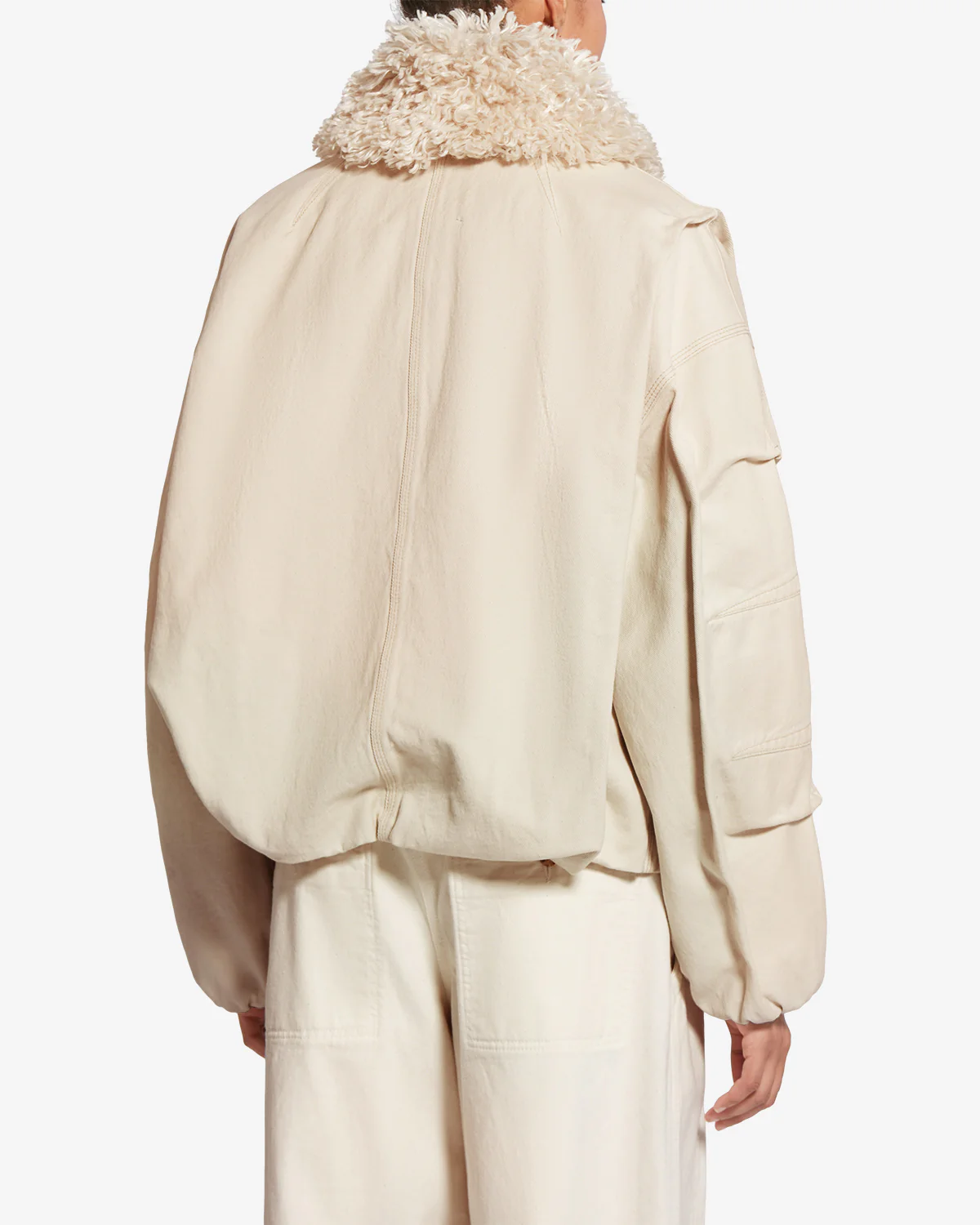 Veste courte en denim à surpiqûres